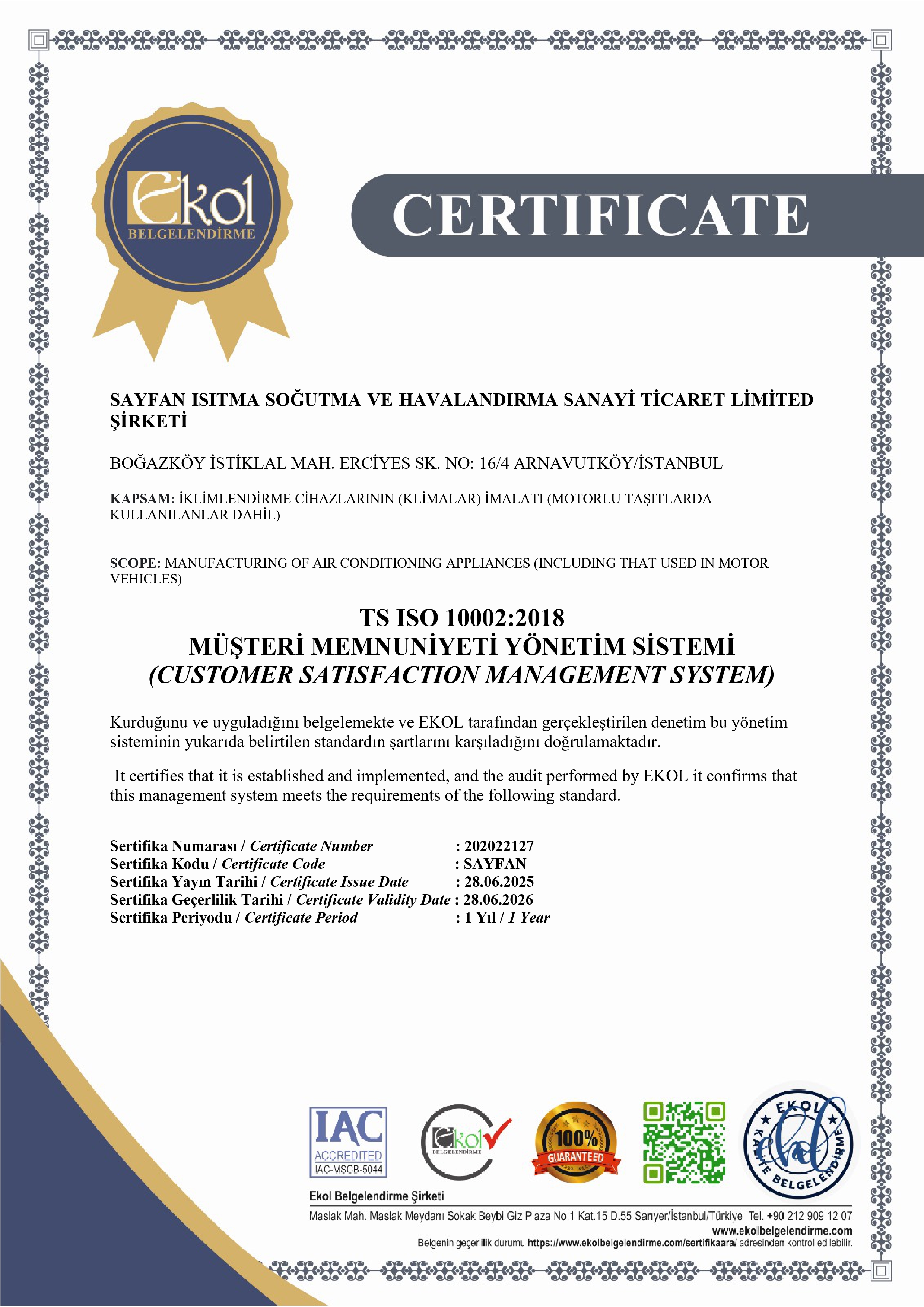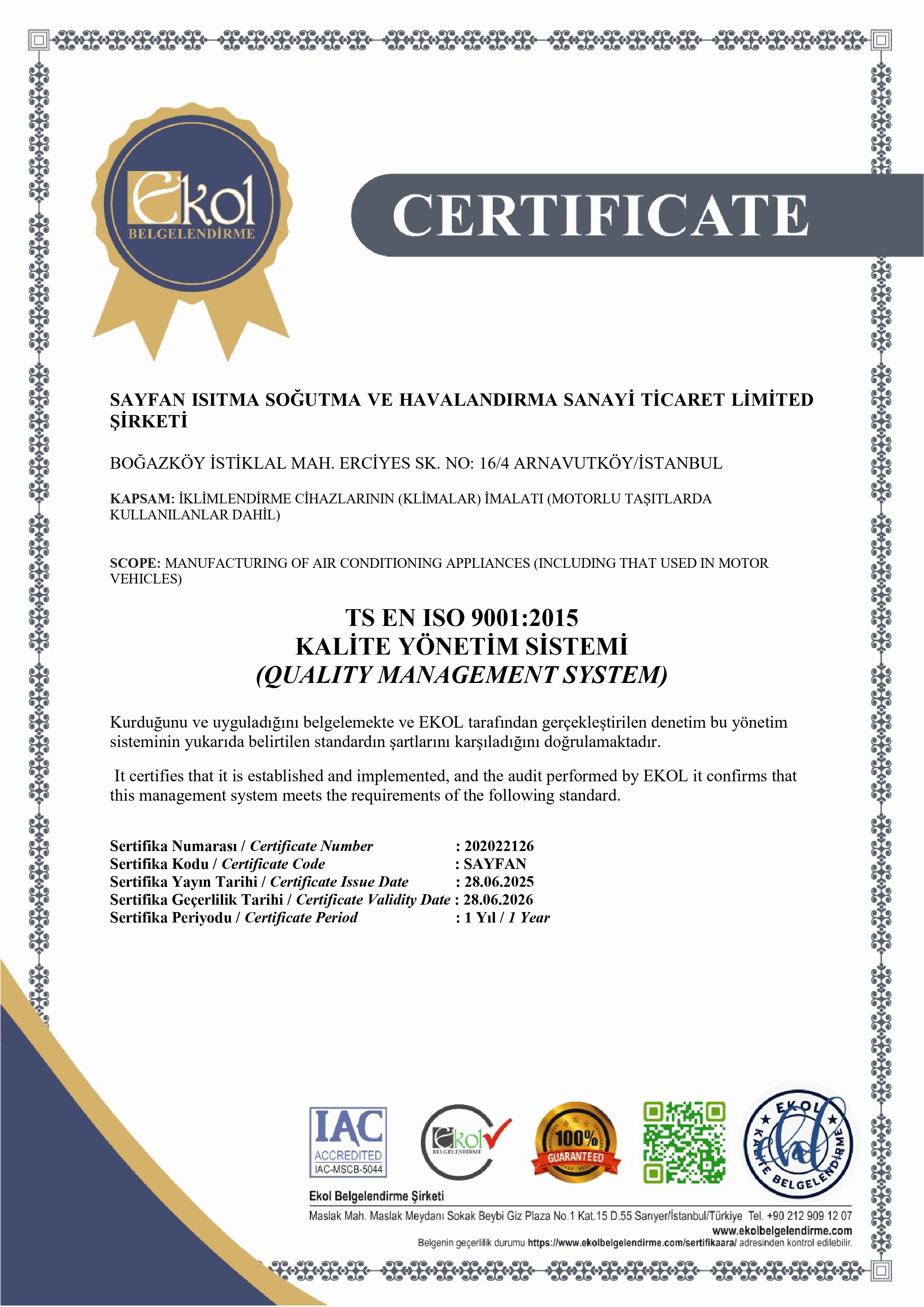 Dizaynda ESNEKLİK, üretimde KALİTE, enerjide TASARRUF, hizmette MÜŞTERİ MUTLULUĞU Sayfan’ın genel politikasıdır.